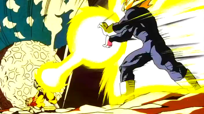 tregua, pero traiciona a Goku y le da un golpe que le hace perder el conocimiento. Vegeta quiere encargarse de Buu sólo, porque ha salido de su encierro por su culpa. Se toma una Semilla del Hermitaño y se dirige al lugar.