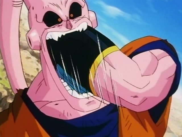 para curarle, pero esta vez su ira no se puede parar. De repente la expulsa toda y sale de él un nuevo Buu (Evil Buu).