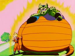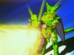 Cell antes de auto-destruirse en el otro mundo después de que goku lo teletransportara.