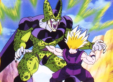 Son Gohan que había perdido las esperanzas, entonces oye la voz de Goku, que estaba hablando a través de Kaio Sama, quien le dice que se prepare para atacar con toda la fuerza que le queda. Se ve el choque de los dos Kame-Hame-Ha, más grandes de toda la serie, y finalmente Son Gohan gracias a la ayuda de Piccolo, Krilín, Ten Shin Han y por último la de Vegeta quien consigue distraer a Cell, logra matar al monstruo de una vez por todas.